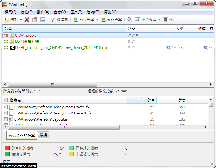 WinContig 1.35.01a 免安裝中文版 - 檔案或資料夾重組軟體